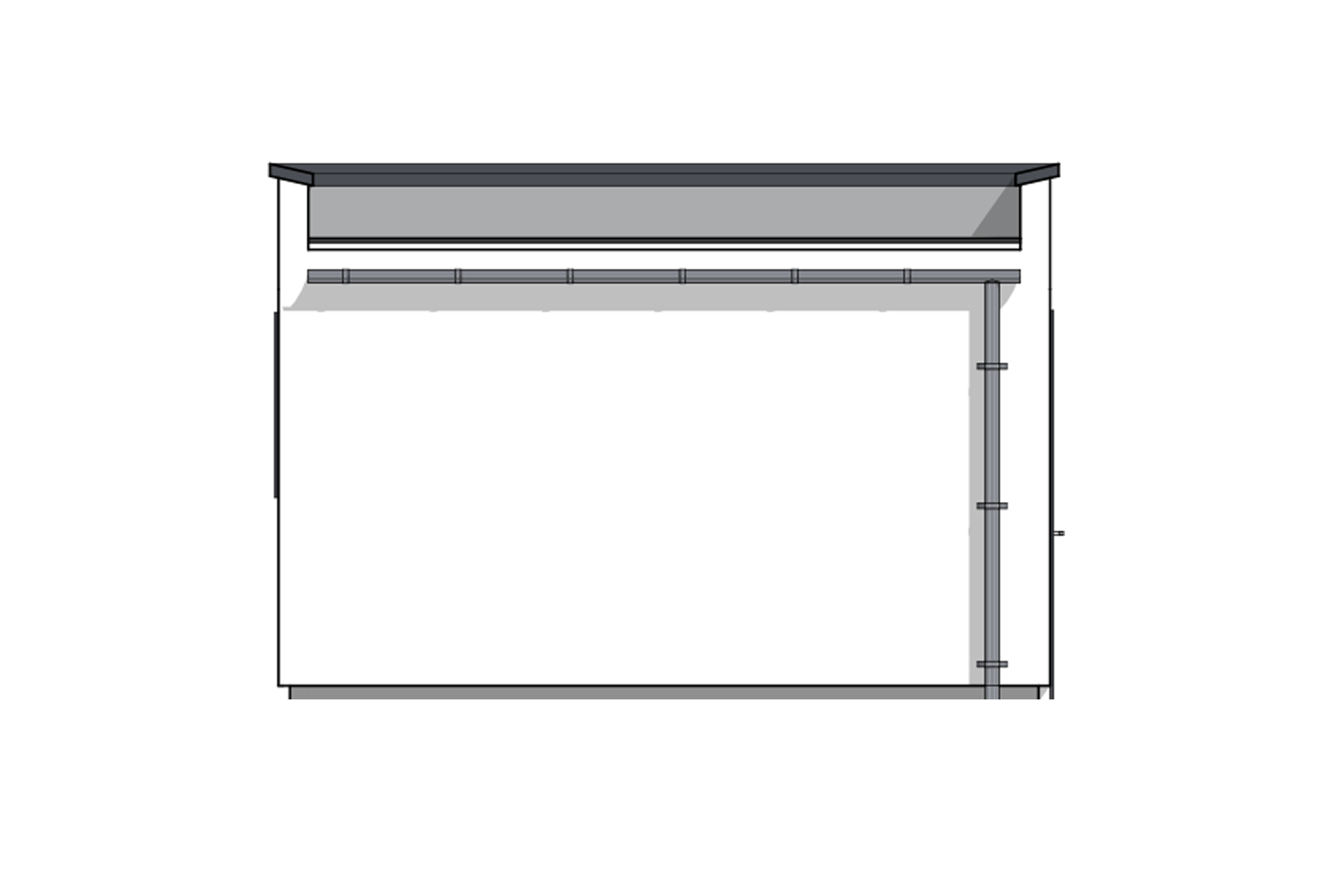 En dør er plassert i bakkant av bygget for å enkelt kunne gå inn eller ut av garasjen uten å måtte åpne porten. Vinduer på øst- og vestsiden av bygget slipper inn lys samtidig som de står fint i stil med resten av garasjens moderne detaljer.